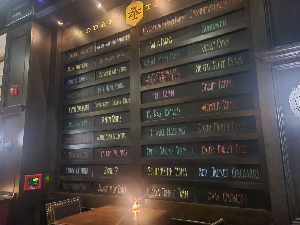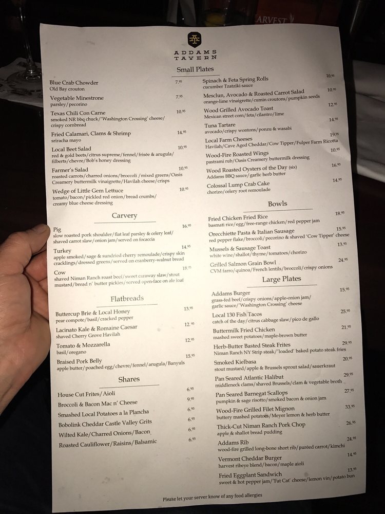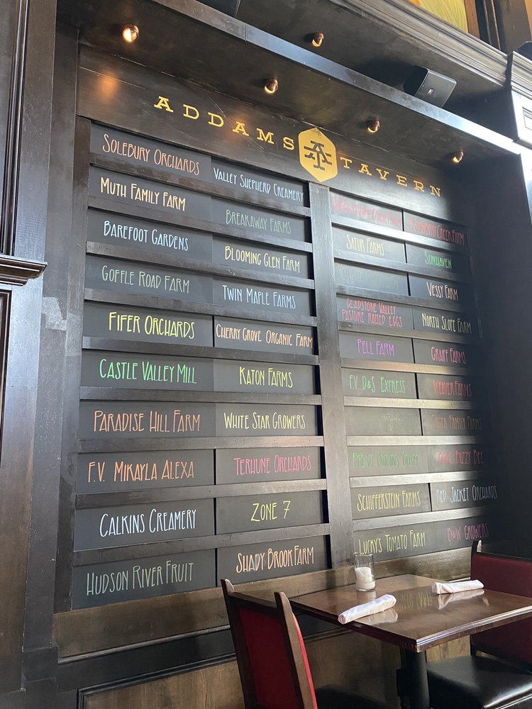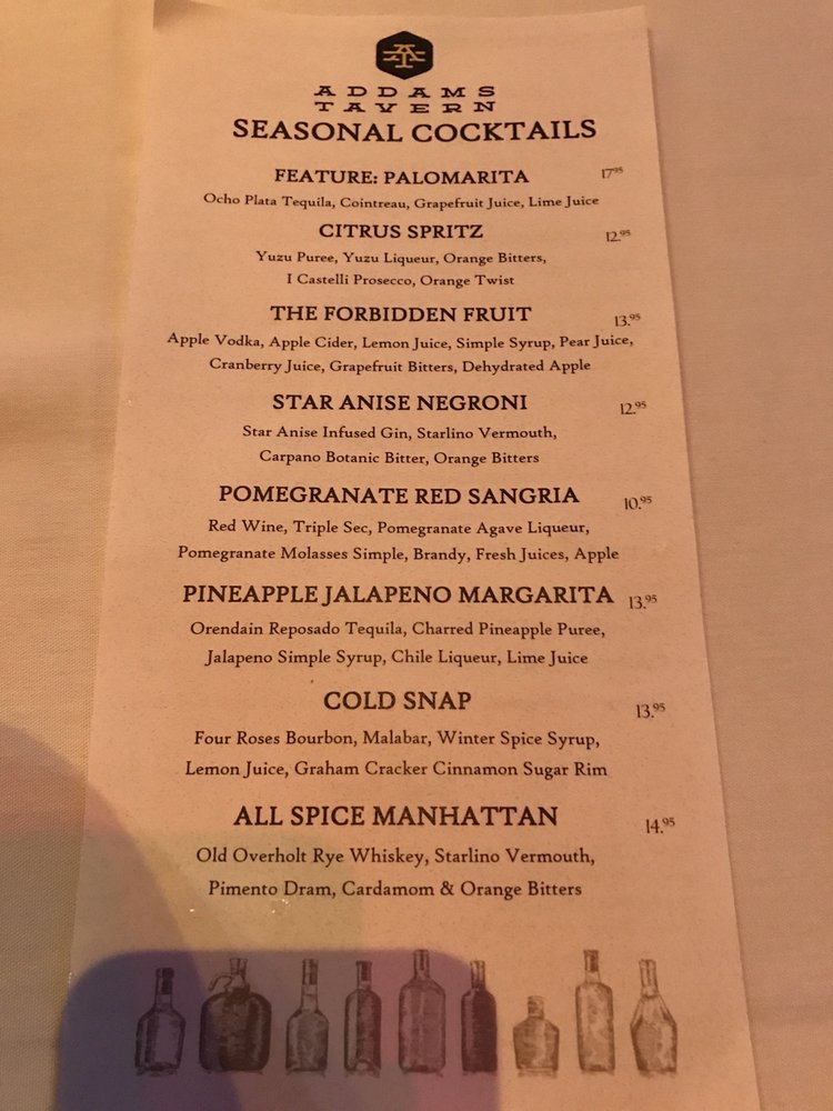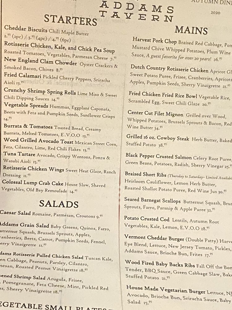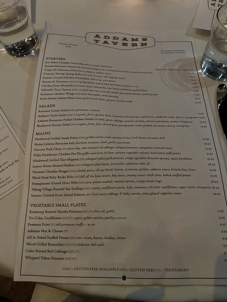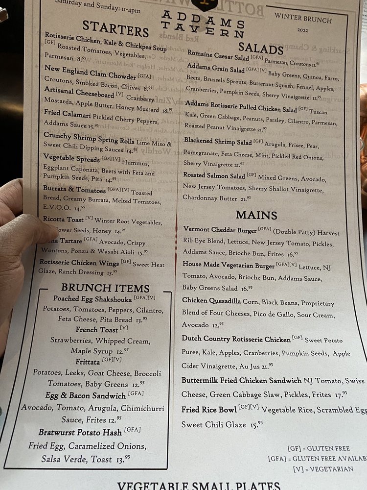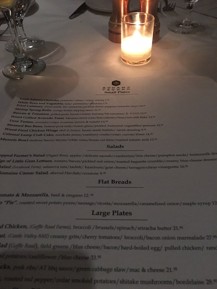 Introducing Addams Tavern, a trendy and upscale eatery in Westfield, NJ, offering a diverse menu of tapas, small plates, and salads. The menu includes unique dishes like the Riverbend Eggs with a variety of flavors, the Chopped Farmer's Salad with local greens and creamery dressing, and small plates like the Wedge of Little Gem Lettuce with bacon and blue cheese. Customers rave about the fantastic service, knowledgeable staff, and delicious food, with reviews mentioning specific dishes like the calamari with a spicy kick and the Ricotta Gnocchi. The restaurant's ambiance is described as dark and romantic, with various seating options and excellent attention to detail. Addams Tavern is a must-visit for those looking for a memorable dining experience in a vibrant setting.